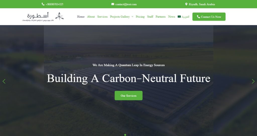 نموذج موقع إلكتروني لشركة طاقة متجددة